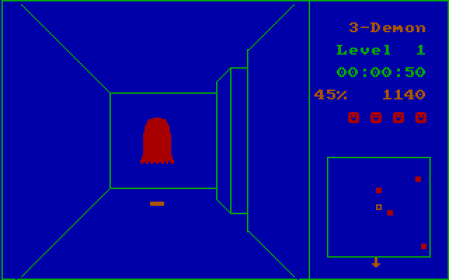 ‘3-Demon’ is a maze game released in 1983 by PC Research Inc. The player navigates through a series of mazes in first-person perspective, trying to reach the exit while avoiding obstacles and enemies. The game features simple graphics but challenging gameplay, making it a classic in the early days of 3D gaming.