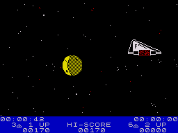 The visuals present a minimalist yet engaging design, characteristic of the era, using a colorful palette to depict the interstellar environment. The sound effects and simple melodies complement the immersive experience, contributing to the game’s nostalgia. The interface is intuitive, allowing players to focus on action-packed combat.