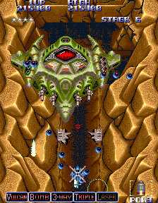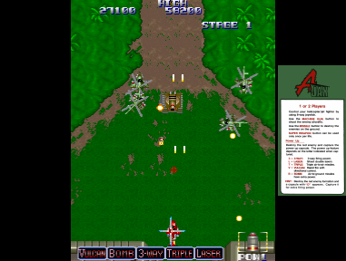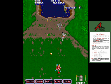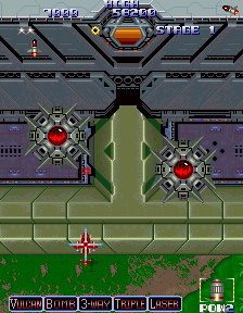 The game is designed as a vertically scrolling shoot ’em up, featuring both airborne and ground-based combat. Players have the capability to switch between two modes of attack, toggling between an air-based fighter plane and a ground-assault tank. This dual-mode gameplay offered a unique twist to the traditional shooter genre, adding an extra layer of strategy as players must decide on the fly which mode best suits the current scenario.