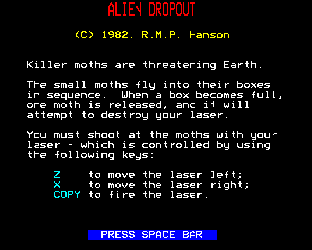 ‘Alien Dropout’ is a vintage arcade-style game that captures the essence of early 80s gaming. Developed with the retro enthusiast in mind, this game delivers a captivating experience with its straightforward mechanics and nostalgic charm. Players take on the challenge of navigating through interstellar obstacles, showcasing their strategic skills and quick reflexes.