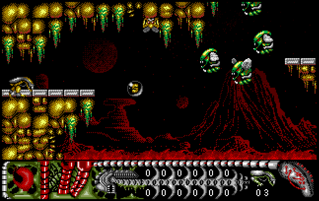 The game features classic shoot ’em up mechanics, where players control a character equipped with formidable weaponry to fend off waves of sinister alien enemies. As players progress through the various stages, they encounter diverse obstacles and bosses, each requiring unique strategies to overcome.