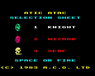 Atic Atac is a classic action-adventure game that immerses players in a labyrinthine castle filled with creatures, treasures, and secrets. Players choose from three distinct characters: a knight, a wizard, and a serf, each with their unique abilities and starting points within the game.