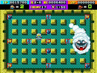 The game’s mechanics involve maneuvering through various labyrinthine stages filled with destructible and indestructible obstacles, each exploded strategically to eliminate adversaries. As players progress through the levels, they encounter different types of power-ups that enhance the protagonist’s abilities, such as increased speed, extended blast range, and multiple bomb placements, adding layers of depth to the strategic bombing experience.
