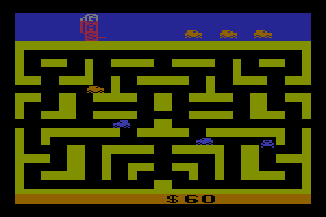 This game is a representation of early 80s video game culture, showcasing the simplicity yet engaging nature of early arcade games. It reflects the era’s innovation in gaming concepts where players were continually seeking new thrilling experiences despite technological limitations.