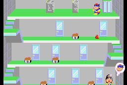Each stage presents escalating levels of difficulty, introducing new types of challenges and increasingly hazardous conditions to navigate. The design and animation reflect a charming visual style typical of the era, complemented by a lively soundtrack that adds urgency to the quest.