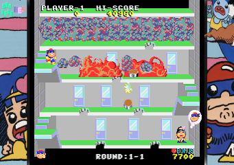 Ben Bero Beh is a classic arcade game that invites players into a world of whimsical and frenetic action. In the game, you control a character navigating through a building on fire, aiming to extinguish the flames and rescue hostages.