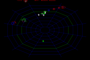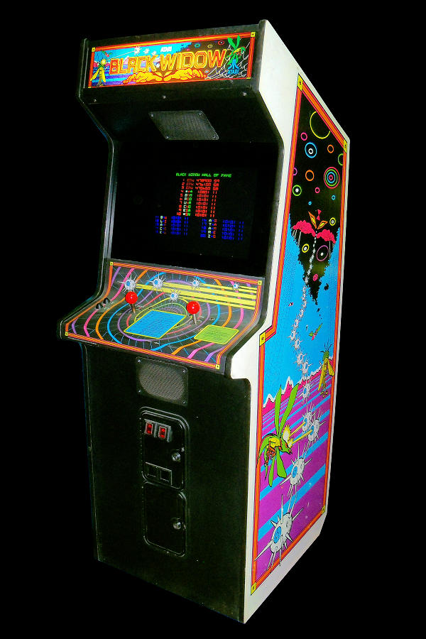 Black Widow is an arcade shooter that challenges players to control a spider navigating a web, defending against invading insects. The gameplay involves moving across the web and shooting down enemy bugs before they reach the center. Players earn points by destroying enemies and collecting the eggs they leave behind.