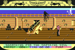 The gameplay involves exploration and item collection set against the backdrop of a ghostly pirate ship. Players control a spectral captain as they hunt for treasure, fend off threats, and communicate with spirits. The game combines elements of platforming with puzzle-solving, requiring players to think strategically as they progress through various levels.
