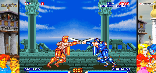 In the realm of arcade fighting games, this title offers a traditional 2D fighting experience with a medieval fantasy theme. Players choose from a roster of medieval warriors, each with unique weapons and fighting styles. Set in vibrant arenas, battles unfold through a series of increasingly challenging opponents, demanding skillful execution of attacks and defenses.