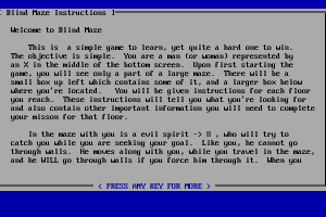 Blind Maze is a classic puzzle game from the late 1980s. It challenges players to navigate through a series of mazes without being able to see the entire path at once. Instead of relying on visual cues, players must use logic and memory to progress through each level. The game tests spatial awareness and strategic thinking as players attempt to solve increasingly complex mazes.