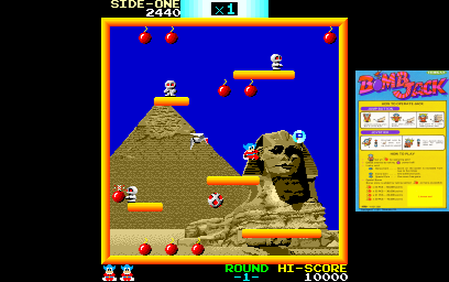 The game maintains its core mechanics, which involve flying over platforms to collect bombs before they explode. Each level presents unique challenges, with enemies adding layers of difficulty. Players must navigate these obstacles while ensuring all bombs are collected in optimal time.