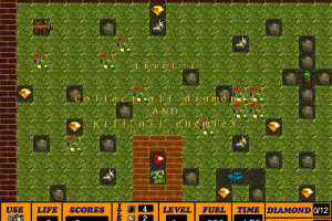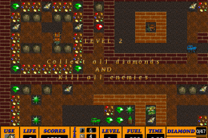 Players control their character through a network of tunnels, strategically placing bombs to clear pathways, defeat enemies, and collect valuable resources. The environment is populated with a variety of challenges that require both tactical thinking and quick reflexes. The game offers multiple levels, each increasing in difficulty and complexity, keeping players on their toes.