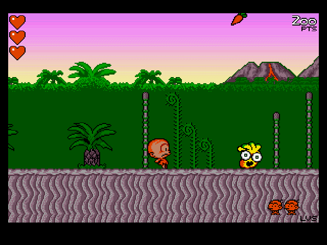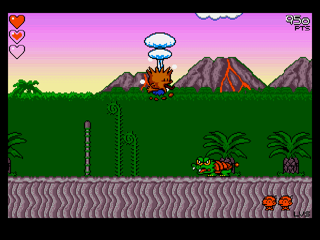 The game features vibrant, colorful graphics that are typical of the era, enhancing the prehistoric environments and character designs. The levels are crafted with attention to detail, creating an immersive world that appeals to fans of retro platformers.