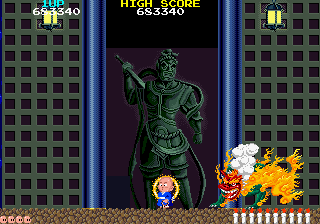 For its time, the game boasted impressive graphics and an engaging soundtrack that complemented its mythical theme. The vibrant colors and detailed sprite work were characteristic of Taito’s arcade releases in the era, contributing to an immersive experience.