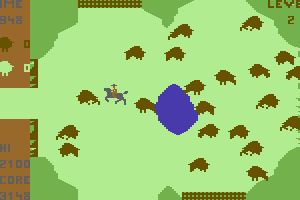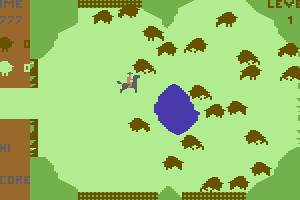 For its time, the game featured simple 8-bit graphics and sound effects that effectively conveyed the western theme. The graphics, while not advanced by today’s standards, provided a clear and charming depiction of a western landscape filled with wandering buffalo.