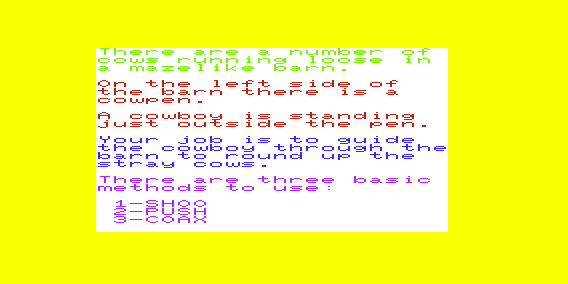 Released in 1982, this game offers a classic arcade experience where players take on the role of a cowboy tasked with rounding up cattle. The primary objective is to guide the cattle into a corral without letting them escape. With simple mechanics and retro graphics, it captures the essence of early 80s video games.