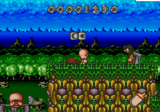 The game showcases colorful and humorous graphics typical of early 90s platformers. The animations of characters and environments are detailed, adding a layer of charm and personality to the game. The sound design complements the visuals, offering catchy tunes and amusing sound effects that enhance the overall experience.