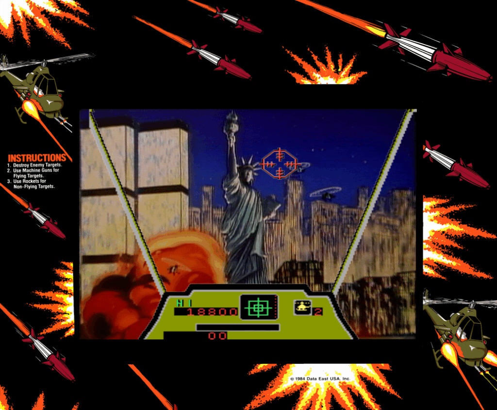 Released in 1988 by Data East Corporation, this arcade game offers a thrilling arcade-style shooter experience. Players are tasked with piloting a high-tech helicopter, navigating various missions that combine swift action with strategic gameplay.