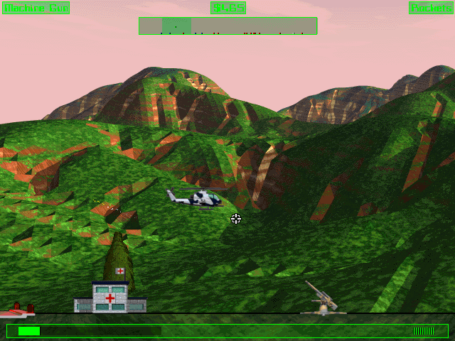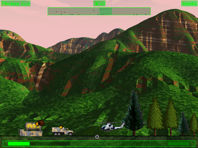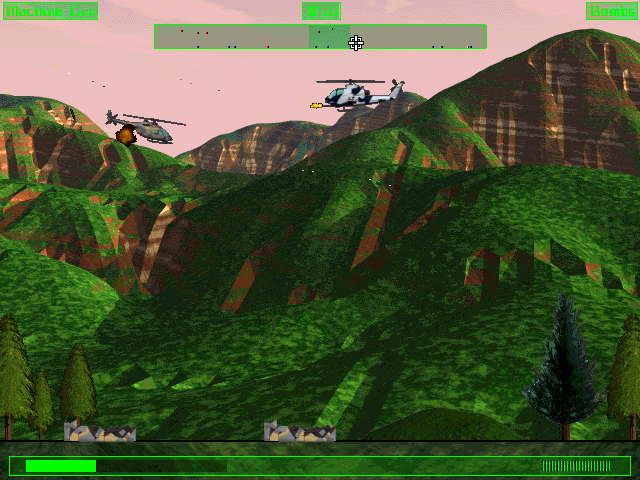 The gameplay revolves around controlling a helicopter gunship armed with powerful weaponry. Players must maneuver through enemy territory, avoiding obstacles and engaging in combat with opponents. As players progress, they face increasingly difficult enemy formations and challenging terrain, requiring quick thinking and strategic planning.