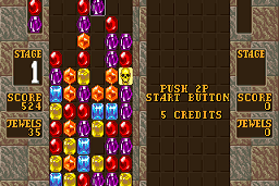 In this installment, players must align falling gems in vertical, horizontal, or diagonal columns to clear them from the screen, a core mechanic carried over from the original game. The twist in this sequel is the addition of time-traveling elements, which introduce varied backgrounds and themed stages representing different historical eras. The objective remains to match colors and survive as long as possible, but the visual diversity adds a fresh layer of excitement.