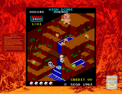Inspired by the success of other arcade games from the era, this game challenges players to guide a jungle explorer on a quest for revenge against a gorilla. The explorer must traverse four unique levels, each with distinct challenges, by jumping over obstacles, climbing ledges, and avoiding wild creatures.