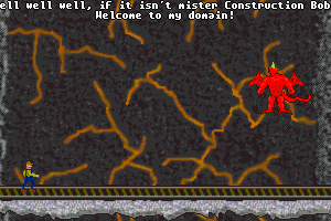 The game offers classic side-scrolling mechanics typical of the mid-90s platformers. Players guide Bob through various levels filled with obstacles and enemies, utilizing his construction skills to build and manipulate the environment to progress. The objective is to escape the infernal surroundings by solving puzzles and overcoming demonic adversaries.