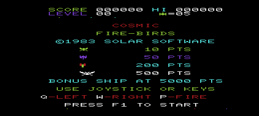 Released in 1983, this game is a classic arcade-style shooter that captivated audiences with its vibrant graphics and fast-paced gameplay. Players take control of a spaceship tasked with defeating wave after wave of fiery alien birds descending from the cosmos.