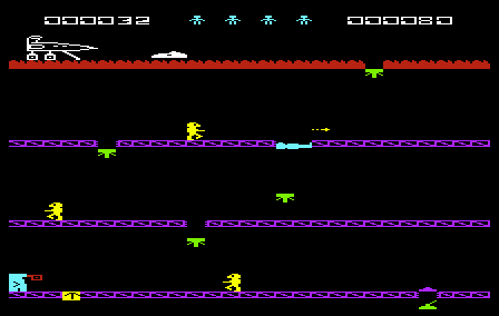 The design of ‘Cosmonaut!’ is characteristic of the early 1980s, with pixelated graphics and simple yet engaging animations. The aesthetic reflects the technological limitations of the time but contributes to the nostalgic charm that many gamers appreciate. The space-themed backdrop and atmospheric sound effects enhance the immersive experience of the game.