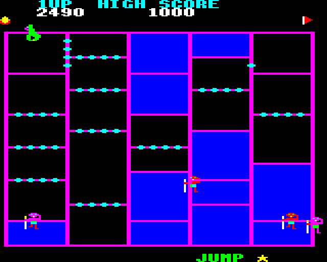 The visual style is characterized by its vibrant colors and simple, yet effective, graphics typical of the time. Coupled with an upbeat and catchy soundtrack, this game delivers an entertaining audiovisual retro experience.