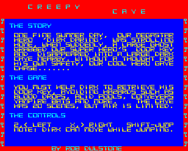The objective was to navigate through the various sections of the cave, overcome obstacles, and solve puzzles to uncover hidden passages and artifacts. Players had to be strategic, using limited resources wisely to progress through the increasingly perilous environment. The game was notable for its atmospheric graphics and sound, which added to the immersive experience of exploring the unknown.