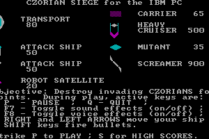 The game was developed during an era when video gaming was transitioning from simple arcade formats to more complex home computer games. Despite being part of the gaming evolution of the early 80s, Czorian Siege did not achieve significant commercial success, but it remains a part of the early history of strategic video games.