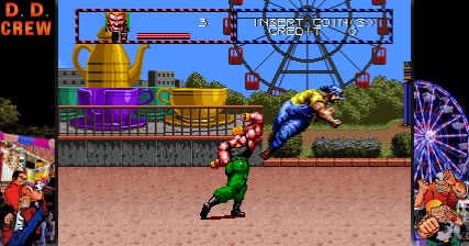 D. D. Crew showcases vibrant, colorful graphics typical of early ’90s arcade games, immersing players in its urban landscapes and gritty backdrops. The characters are designed with distinct details, reflecting the era’s aesthetic. The sound design features energetic music and sound effects that enhance the action-packed gameplay experience.