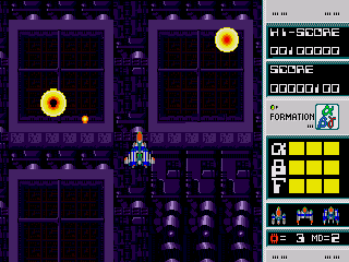 The game employs a unique power-up system, where collecting certain items not only increases the ship’s firepower but can also provide defensive measures such as shields. The game is known for its dynamic enemy patterns, requiring players to adapt quickly to changing attack formations.