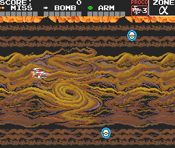 In this game, players navigate a spaceship through various stages filled with enemies and obstacles. The primary objective is to defeat the massive, mechanical bosses that appear at the end of each level. Players must use strategy and quick reflexes to avoid enemy fire and strategically attack weak points on the bosses. Power-ups can be collected to enhance the ship’s abilities and increase firepower.