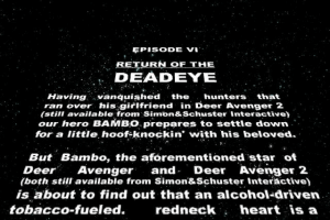 Released in 2000 by Hypnotix, Inc., this game continues the unique premise of its predecessors, flipping the script on the traditional hunting genre by placing players in the role of a deer seeking vengeance on hunters. Known for its satirical and comedic tone, the game extends this playful narrative into a three-dimensional environment, providing a new level of immersion and entertainment.
