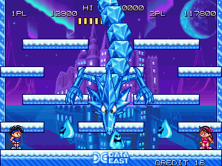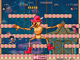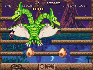 Released in 1992 by Data East Corporation, this arcade game offers players a unique side-scrolling experience. The game incorporates vibrant graphics and catchy music, embodying the typical style of the early ’90s arcade games.