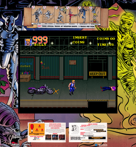 Released in 1992 and developed by East Technology Corp., this beat ’em up arcade game is the third installment in the renowned Double Dragon series. Players embark on an adventurous quest to acquire the mythical Rosetta Stones, which takes them across various global locations, such as the United States, China, and Egypt. The game continues the legacy of the iconic Lee brothers, martial arts experts who are determined to overcome challenges and enemies throughout their journey.
