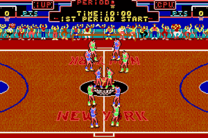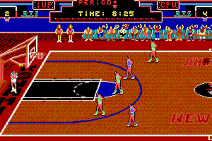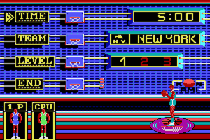 Players control a basketball team in either a single-player or multiplayer format, competing in a fictional basketball tournament. The gameplay involves dribbling, shooting, and defending, with a dynamic and engaging interface that emphasizes live-action play. Notably, it features a jump shot mechanism that is unique for its era, along with stunning cutscenes showing slam dunks.