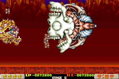 Irem Corp. released an intriguing shoot ’em up video game in 1990. The game immerses players into a fantastical world where they control a hero riding a powerful dragon. Set against the backdrop of a mystical realm, players must navigate through various levels filled with enemies and obstacles, showcasing their reflexes and strategic abilities.