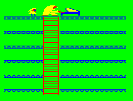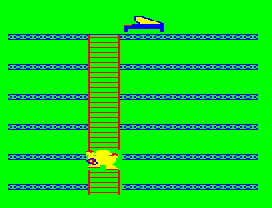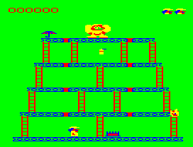 The game involves players navigating a series of increasingly challenging levels, typically requiring them to avoid obstacles and collect items. The graphics are simplistic, featuring pixelated characters and environments that were standard for early 1980s games.