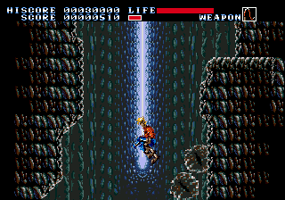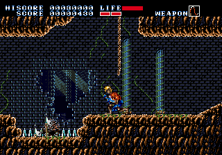 The gameplay involves side-scrolling platform mechanics, where players must use the protagonist’s whip to attack enemies and interact with the environment. The game’s design includes both combat and puzzle elements, requiring players to carefully plan their moves to progress through levels efficiently.