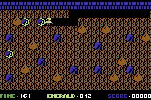 Players guide their character through each mine, collecting all emeralds to unlock the exit to the next level. The mines are filled with hazards such as rocks that can fall and block paths, as well as various enemies that need to be avoided. Strategic planning is essential to successfully navigate the increasingly difficult levels.