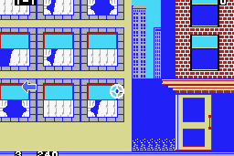 The gameplay is primarily first-person shooter-based. As players move through different levels, they must aim and shoot at gangsters who appear from behind various urban landmarks. The game is fast-paced, requiring players to make split-second decisions to avoid being hit while taking down enemies.