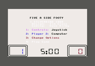 Structured with simple graphics typical of late 1980s sports games, it provides a nostalgic vibe. The controls are straightforward, reflecting the technological capabilities of the time, yet intuitive enough for players to enjoy the dynamics of five-a-side football.