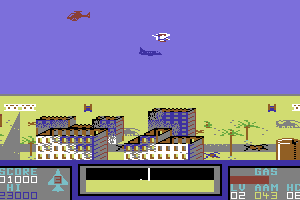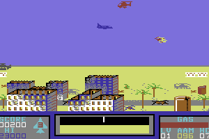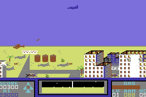 Players navigate their jet across varying terrains, utilizing radar to spot adversaries and strategically destroy them before they reach allied sites. The game introduces elements of resource management, requiring the player to refuel and rearm their jet at friendly bases, adding an extra layer of complexity to the combat scenario.
