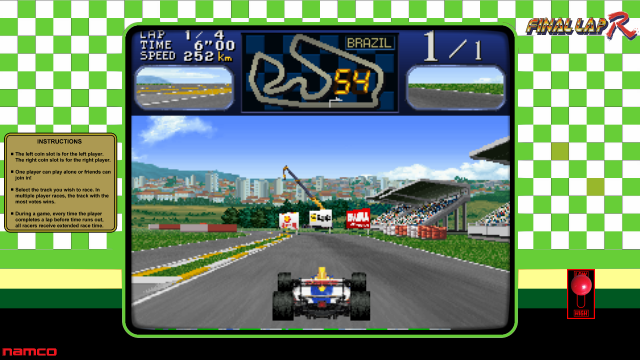 The game is an arcade racing video game developed and released by Namco in 1994. As part of the “Final Lap” series, this installment continues to deliver the high-speed racing action that fans of the series have come to expect. It features improved graphics and gameplay mechanics compared to its predecessors.