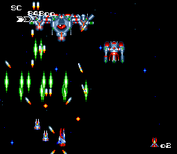 The game challenges players to pilot a futuristic spacecraft, combating waves of enemies while avoiding projectiles and environmental hazards. As players progress through various levels, they can collect power-ups that enhance their ship’s weaponry, ranging from standard shots to more advanced laser and spread shot options. The game’s difficulty escalates with each stage, providing a rigorous test of reflexes and strategic planning.