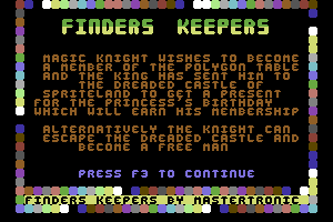 The game, released in 1985, is a classic platform adventure developed by David Jones for the ZX Spectrum, Amstrad CPC, and Commodore 64 systems. It was among the first titles by the well-known developer Mastertronic. The gameplay involves exploring a castle, collecting items, and solving puzzles to retrieve treasure.
