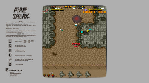 In ‘Fire Shark’, players control a biplane equipped with an array of powerful weapons to combat adversaries through various stages filled with challenges. The game demands not only quick reflexes but also tactical maneuvering to dodge enemy fire and obstacles. Players can collect power-ups to upgrade their weapons, enhancing their offensive and defensive capabilities as they progress through increasingly difficult levels.