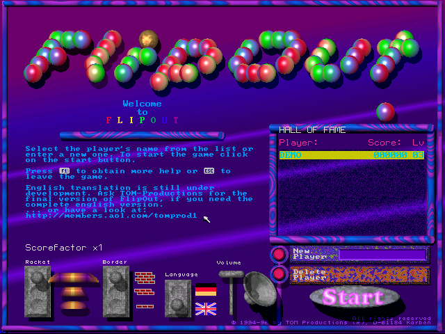 Released in 1996, FlipOut! is a vibrant and unique puzzle game developed by TOM Productions. The game stands out with its quirky and colorful aesthetics, inviting players to engage with its playful environment and innovative puzzle mechanics.